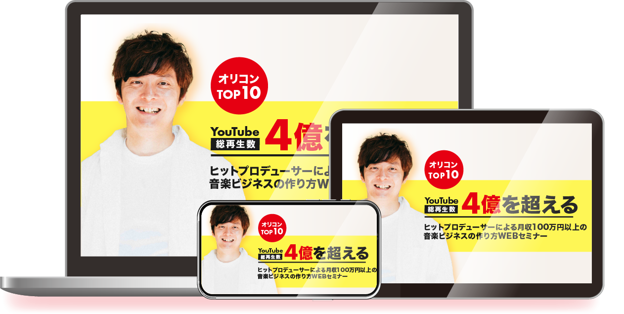 音楽プロデューサーとして、オリコンチャートTop10 50作品以上。2020年〜2022年の2年間で、YouTube総再生回数4億再生以上。音楽プロデュース、ギタリスト、キーボーディスト、作詞作曲編曲家として活躍中。